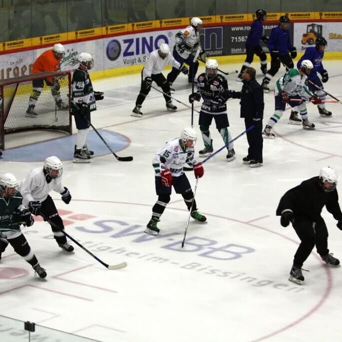 - trainiert werden darf ausschließlich in voller Eishockey-Ausrüstung