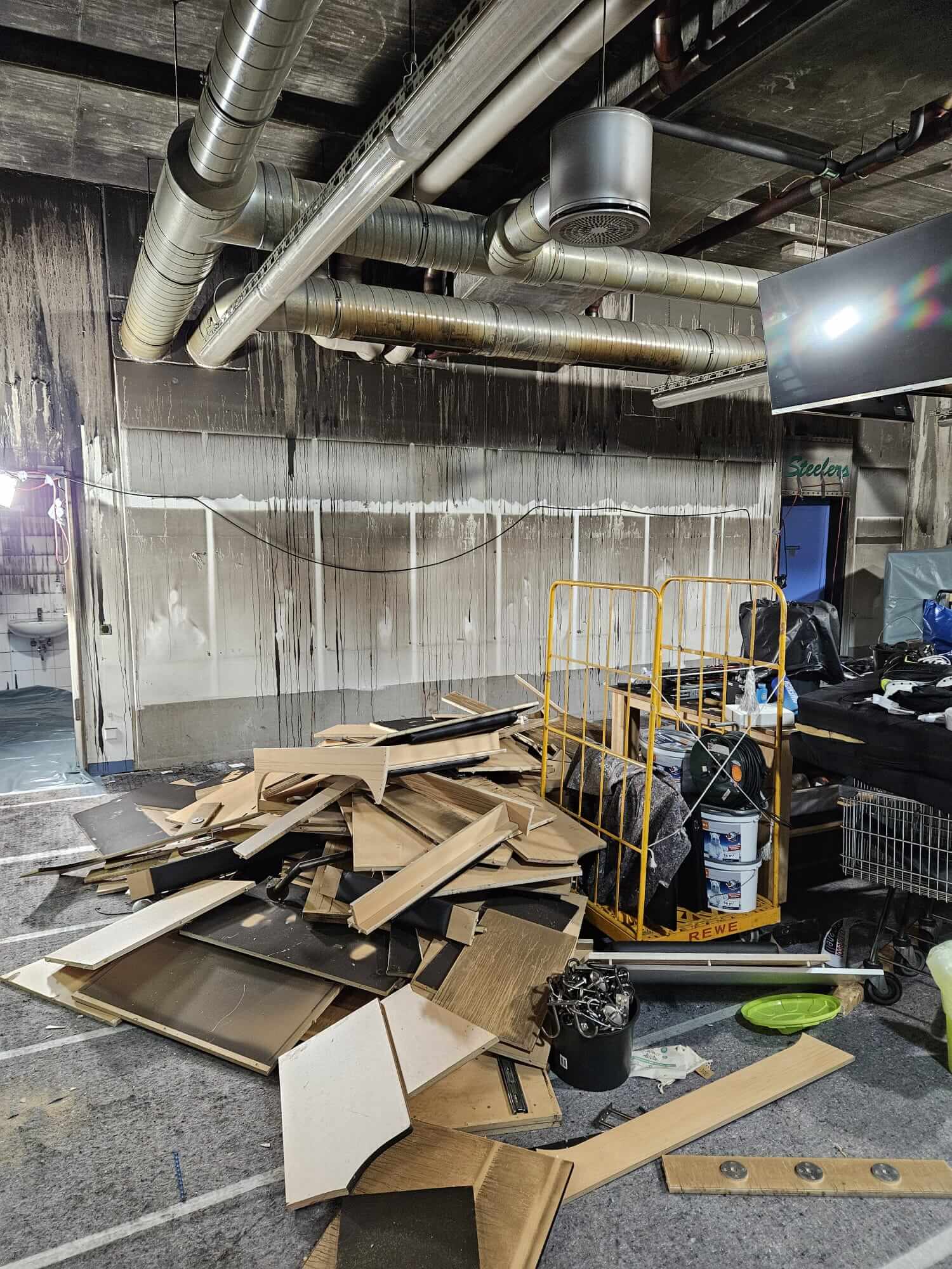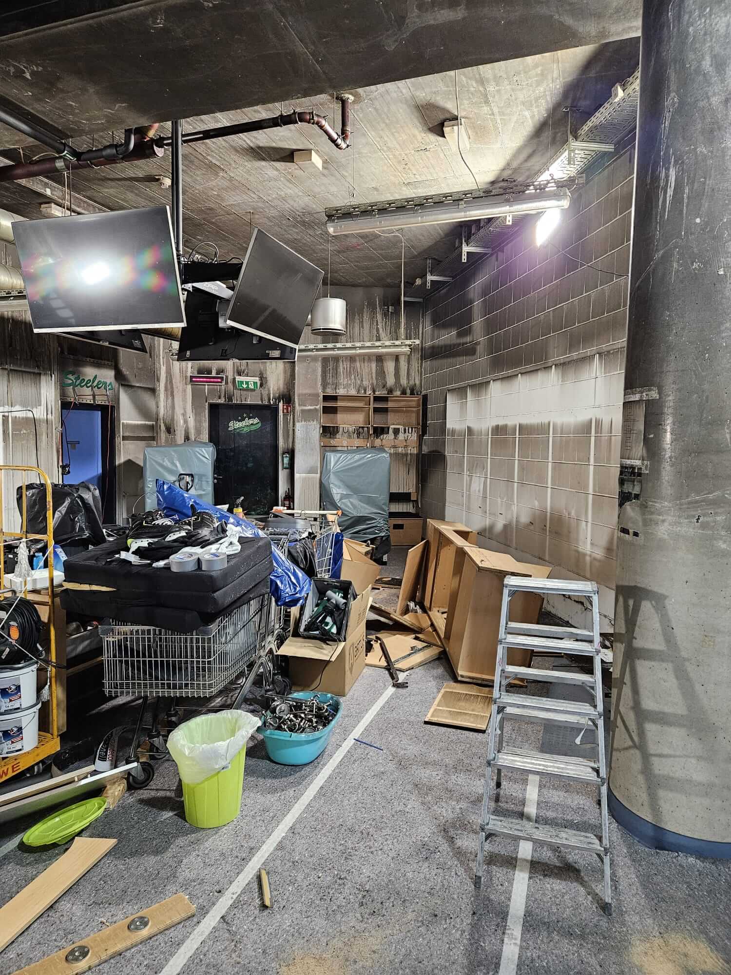 Ein buchstäblich „schwarzer“ Tag, der uns noch sehr lange in Erinnerung bleiben wird, ereignete sich am 08. August 2024. Ein Brand im Saunabereich der Steelers-Kabine (ausgelöst durch einen technischen Defekt) hatte bzw. hat weitreichende Folgen für unseren Club und unsere Mannschaft. Neben dem eigentlichen Feuer, sind es insbesondere die Verschmutzungen durch den entstandenen Ruß, die fast alle Gegenstände im Kabinenbereich unbrauchbar machen.